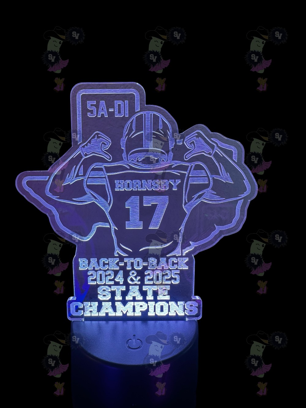 This LED light is a LGP custom-designed in Spring Branch TX made from high-quality acrylic, featuring intricate laser etching to display your love for SV with exceptional precision. The acrylic surface provides a sleek, modern look while showcasing your logo in vibrant colors when illuminated by the LED lights inside the base. The LED light is capable of displaying a wide range of colors, and the settings can be easily adjusted to match your preference. Powered either by batteries (Not included) or a USB connection (Cord Included), making it convenient to use in any setting.
