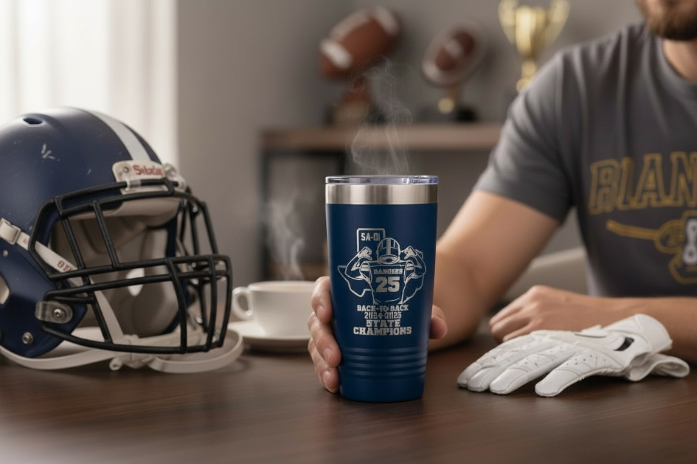 The logo is expertly laser engraved, creating a clean, permanent design that will not fade or peel—making this tumbler a lasting keepsake for years to come. Available in multiple styles, including a tumbler with a handle for easy portability, a handle-free tumbler for a sleek, streamlined look, and a coffee mug option.