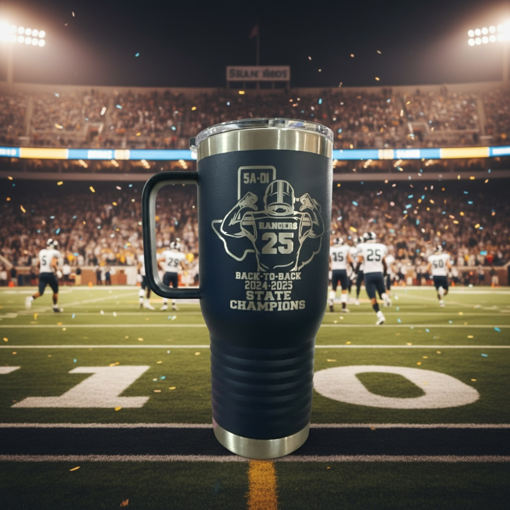 Celebrate the 2025 SVHS Back-to-Back State Champion victory with a Polar Camel Tumbler or Coffee Mug featuring LGP's bold, vibrant engraved logo (Jersey Name/Number can be Personalized). Crafted from high-quality stainless steel, each piece offers exceptional durability and performance with double-wall vacuum insulation to keep your beverages hot or cold for hours. Each tumbler includes a slide-top lid for convenient, spill-resistant use.