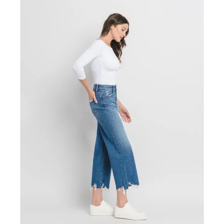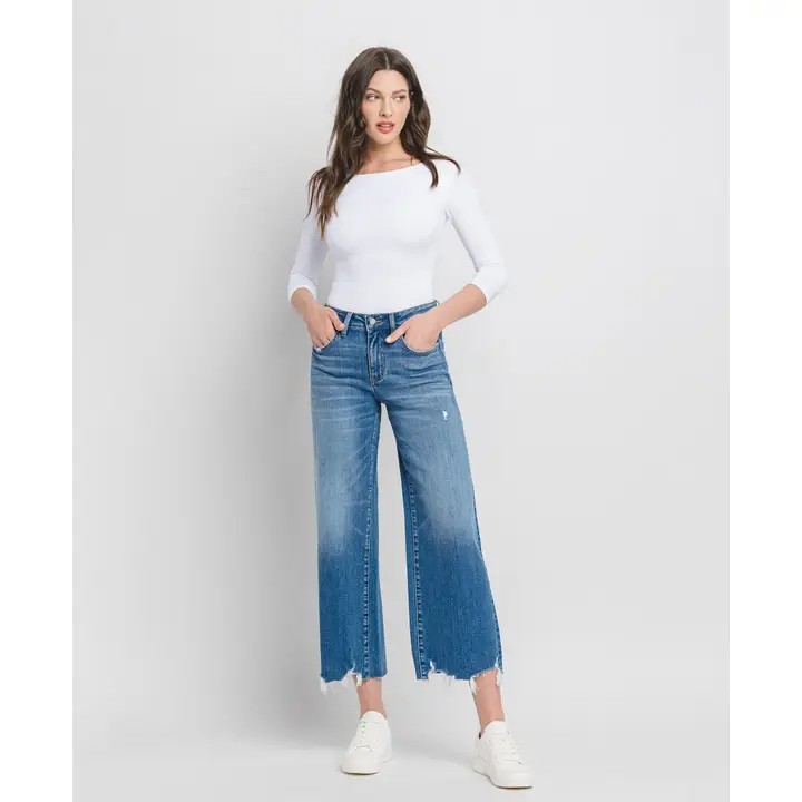 These High Rise Crop Wide Leg Jeans are a stylish and comfortable addition to any wardrobe, offering a flattering fit with a trendy, relaxed silhouette. Here's a breakdown of their features: