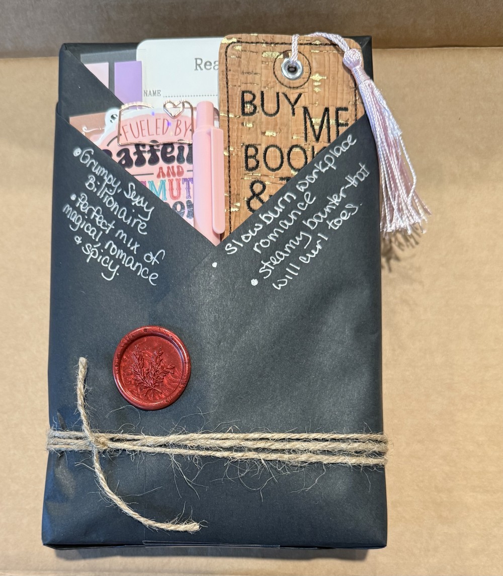 Blind date with a book. Get cozy with a surprise book in your favorite genre or just be completely surprised. Each book comes with a pen, tabs, an embroidered bookmark, stickers and a page marker. Books are gently used, saving the planet on book at a time.