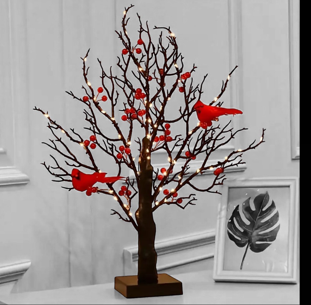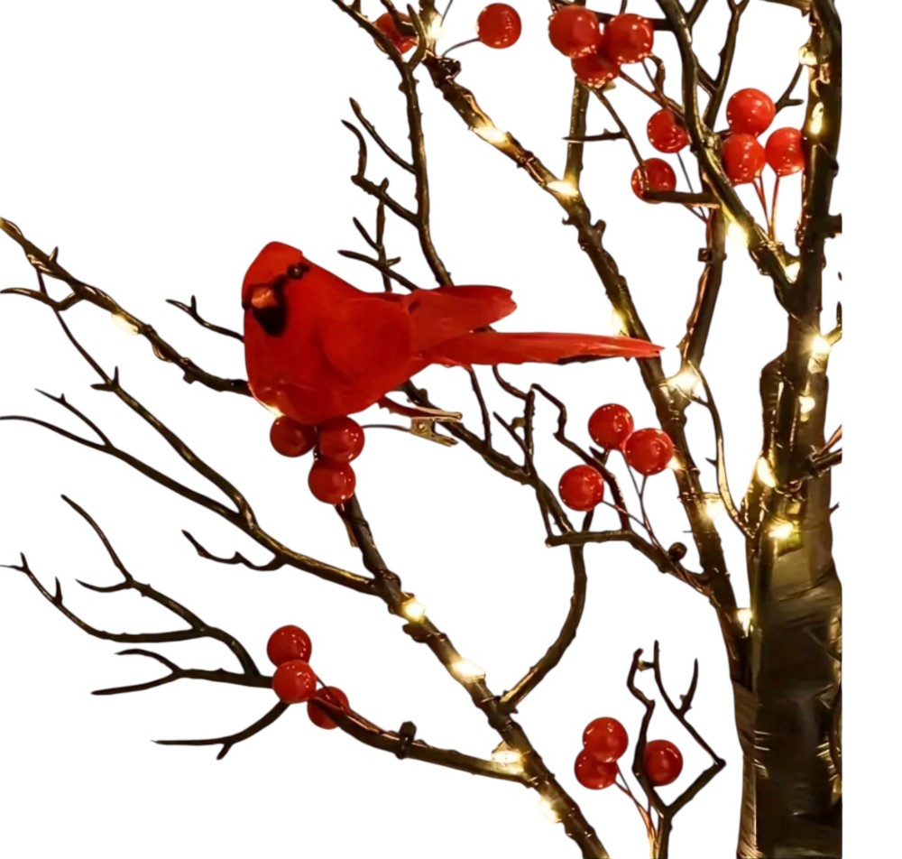 Add a touch of winter magic to your home with our Cardinals in Tree LED Display! This beautifully crafted piece features bright 120 LED lights that illuminate two charming cardinals perched on a tree. Standing 21.66" tall and 4" wide, it’s the perfect size for a mantle, shelf, or entryway display. The convenient on/off/timer switch lets you easily set the mood for any occasion.
