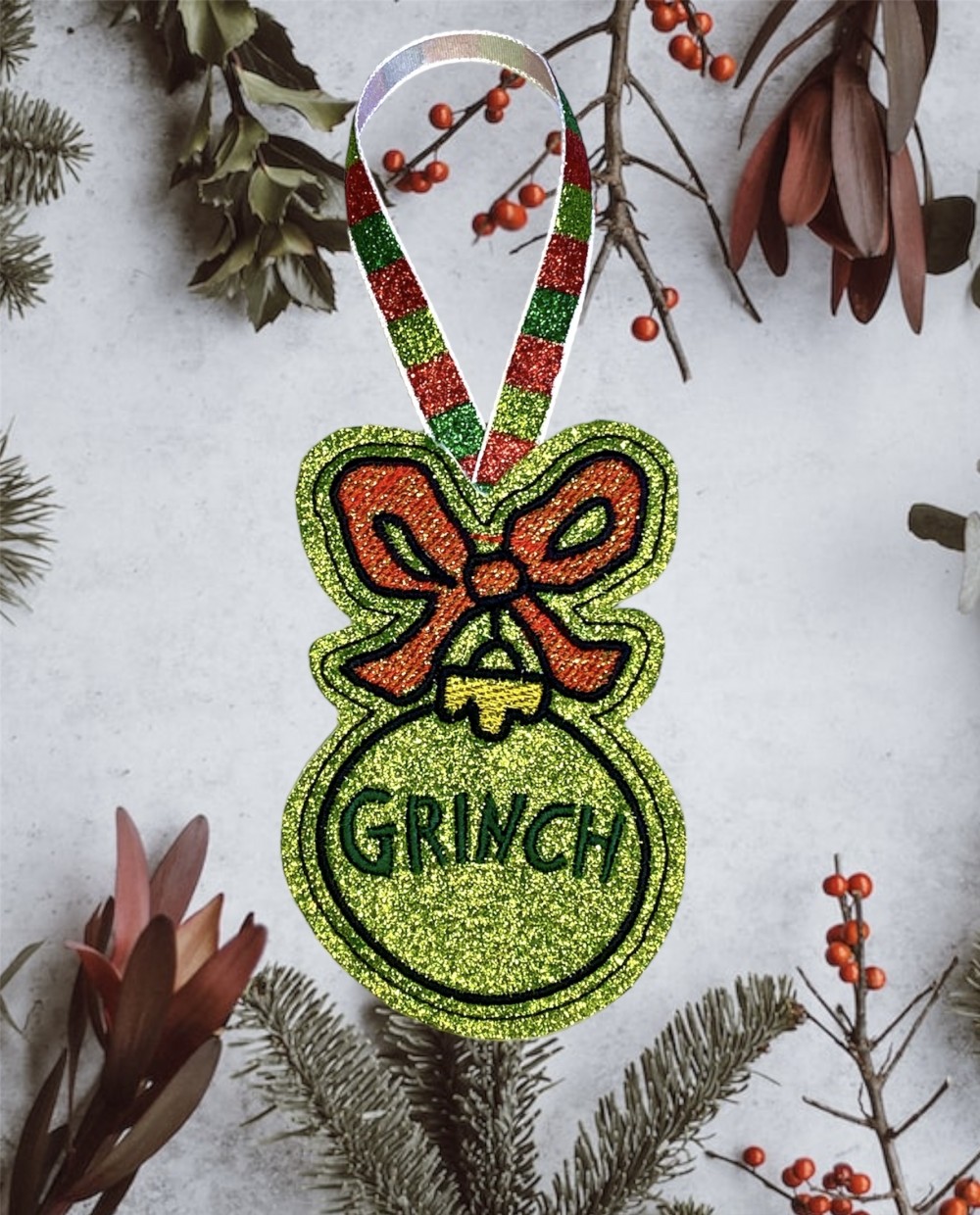 Merry Grinchmas! That grumpy guy we all love is the theme of these ornaments. These glittery festive ornaments make the perfect gifts for your co-worker, friend or to keep for yourself.