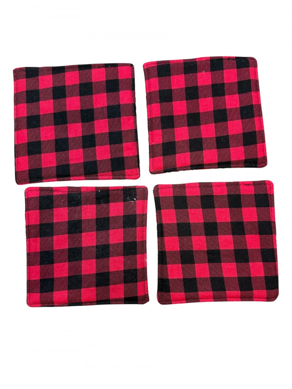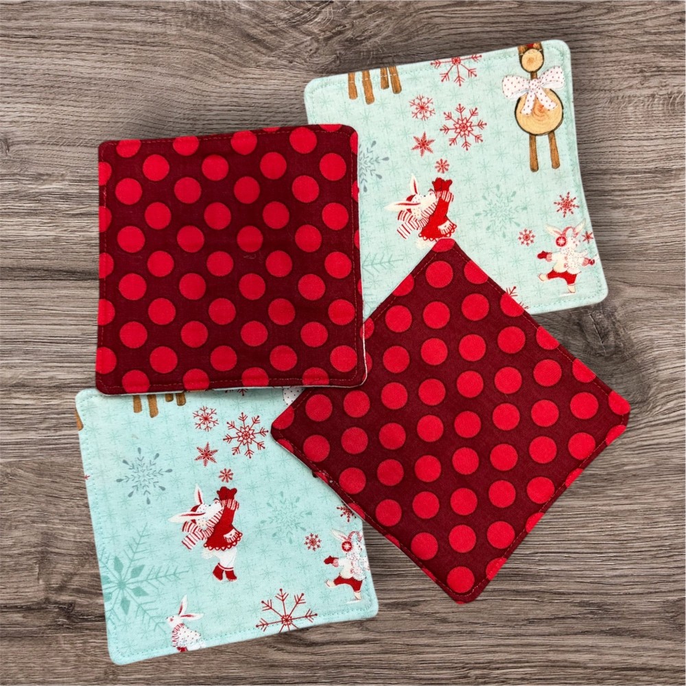 This set of 4 coasters is made of layered fabric and fusible batting to add thickness. These coasters would make a nice Christmas, housewarming gift, hostess gift, teacher gift or something special for yourself. Machine washable, line dry.