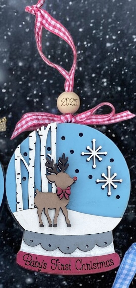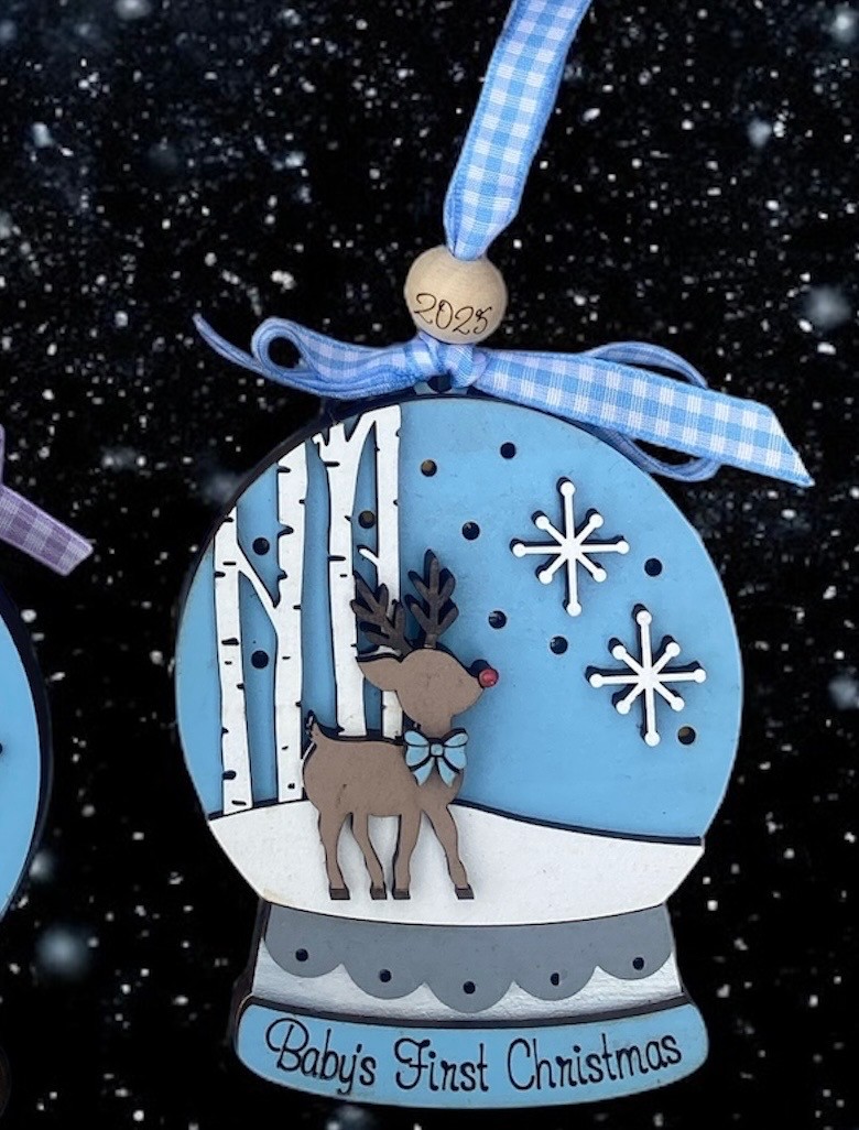 Celebrate a magical milestone with our hand painted Baby’s First Christmas Snow Globe Ornament, a heartwarming keepsake that captures the wonder of winter. Nestled inside this globe-shaped ornament is a serene snowy scene featuring a baby deer surrounded by delicate snowflakes — a gentle nod to nature’s quiet beauty and your little one’s first holiday season.