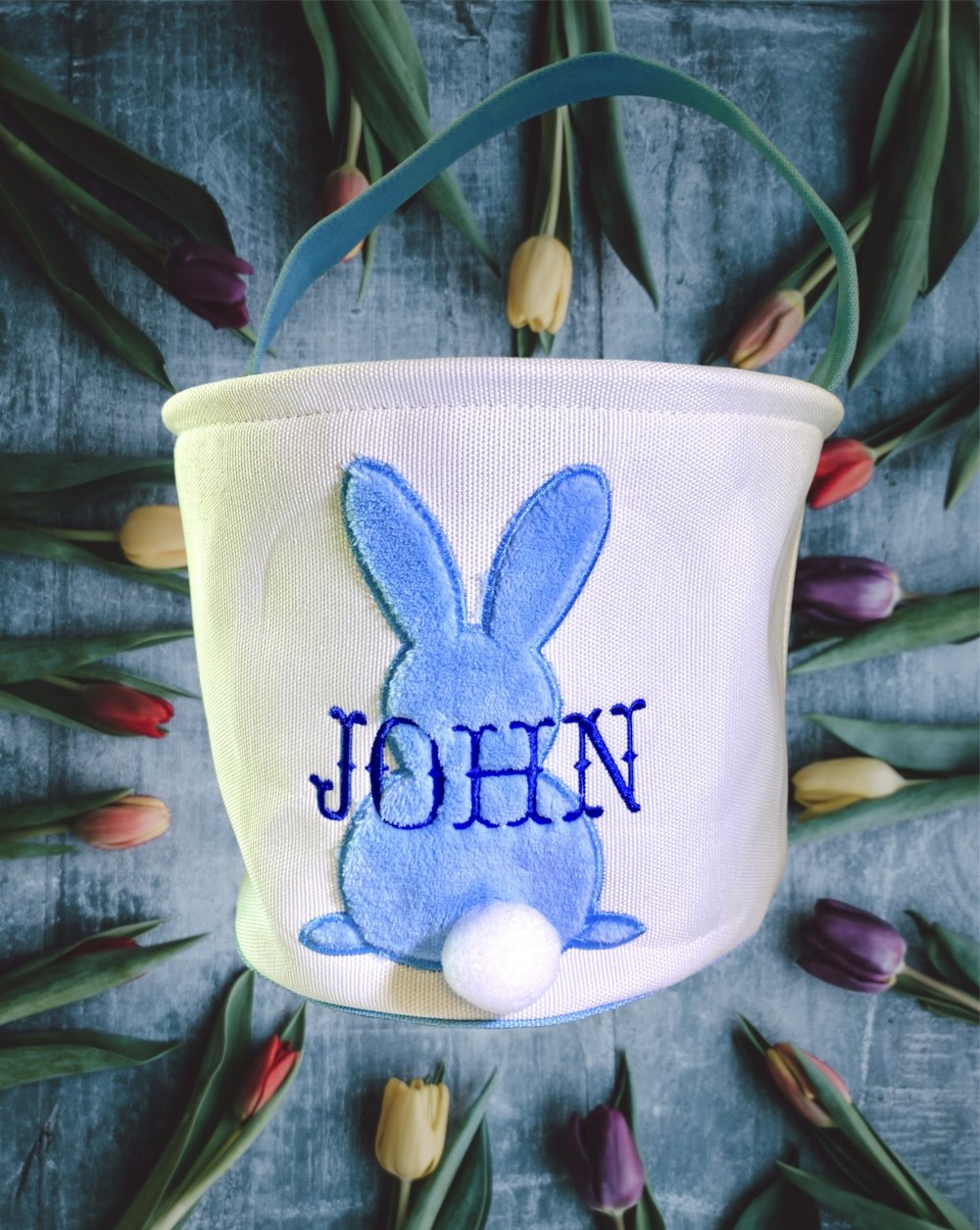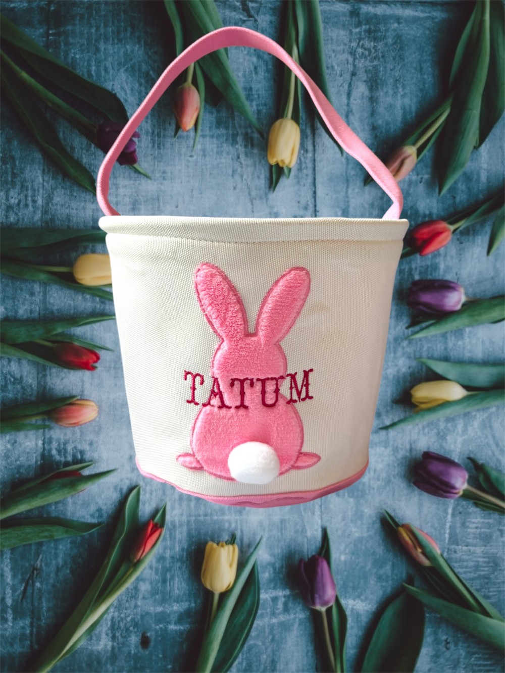 Get these adorable custom Easter baskets before they are gone. Pink or Blue are available with 2 font choices. Don't wait, get them in time for Easter!