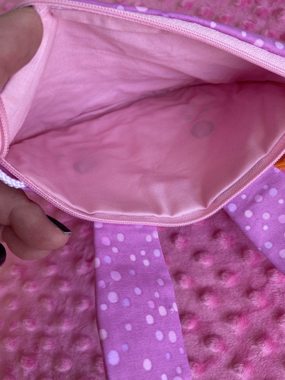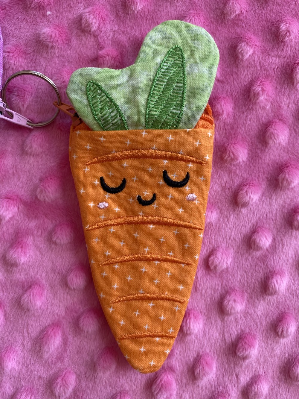 This girl's bunny purse for Easter is a delightful accessory featuring beautiful colors, bunny ears, a carrot coin purse and a cute bunny face with embroidered details. It's the perfect size for carrying Easter treats or small treasures. This bag is made from 100% cotton and is fully lined. It measures approximately 5.5"x8" and the strap is approximately 30" in length.