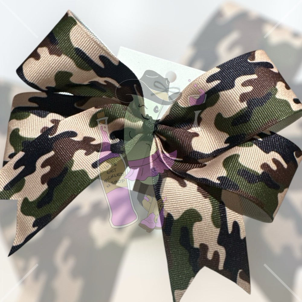 You can't hide even with these cute Camouflage pattern bows and are perfect for growing with your child! The design allows for a smaller bow to be tucked inside the larger one, creating a playful, layered look that’s fun and unique. Whether worn as a single bow for a simple, sweet touch or paired together for a more dynamic style, you can easily switch up the look to match any occasion. Plus, these durable bows are made to last, so your child can enjoy them for years to come, adapting as their style evolves. It’s a fun, long-lasting accessory for every stage!
