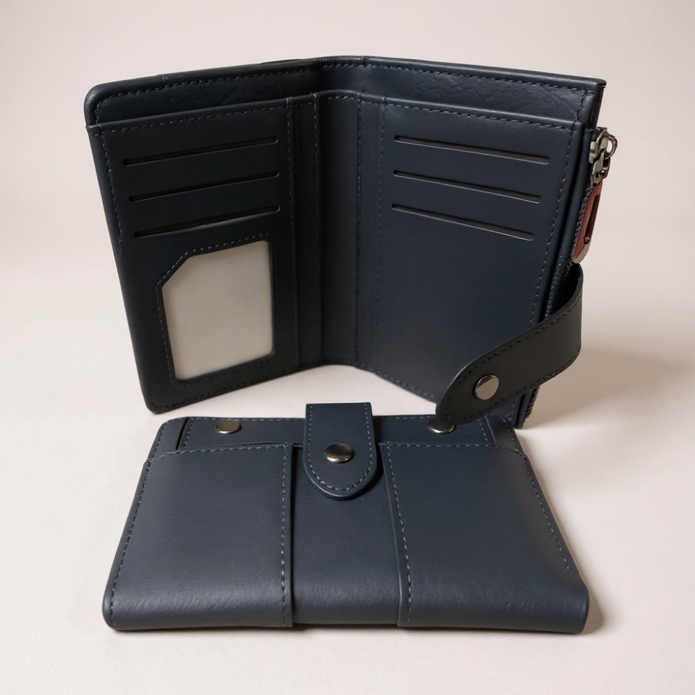Elevate your everyday essentials with this Elegant Snap Closure Wallet, designed for both style and functionality. Crafted with great quality materials, this wallet truly has it all—ample space for ID, cards, coins, and cash, plus a removable hidden ID/card insert for added convenience and versatility.