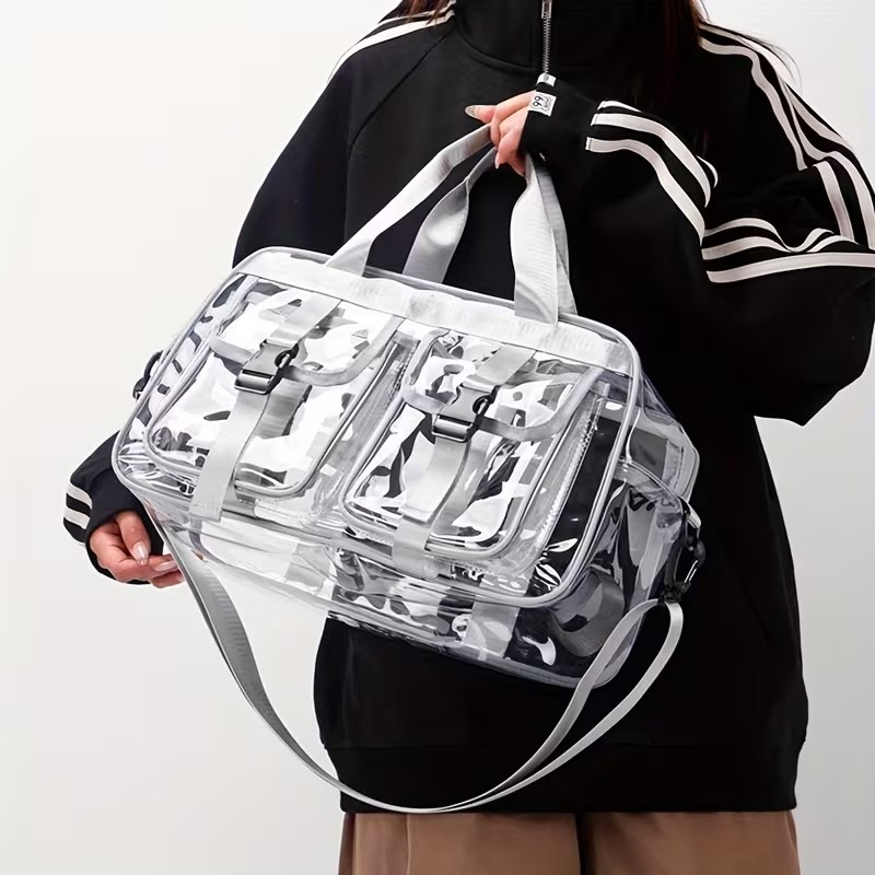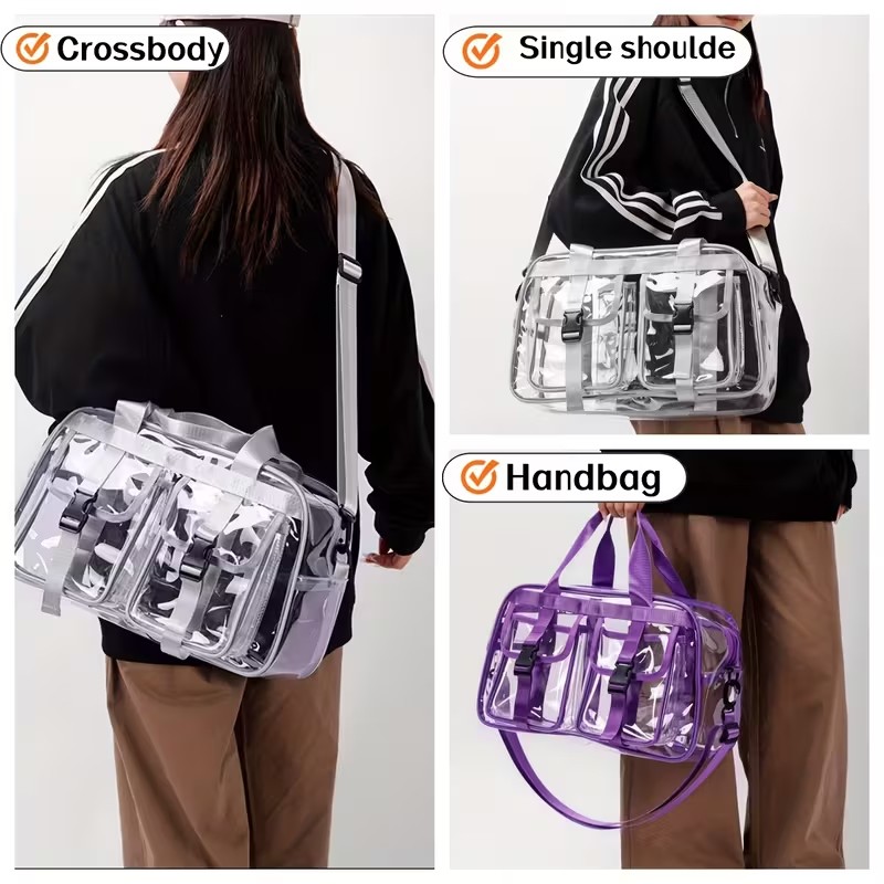 Stay stylish and organized on the go with this Ultra Clear Crossbody Bag, the perfect companion for the gym, travel, or a weekend getaway. Designed with both function and convenience in mind, this versatile bag keeps your essentials visible, accessible, and secure.