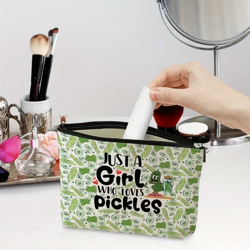 Show off your love for pickles anywhere you go with this cute zipper lightweight and waterproof pouch. Great for makeup, snacks or anything you would like.