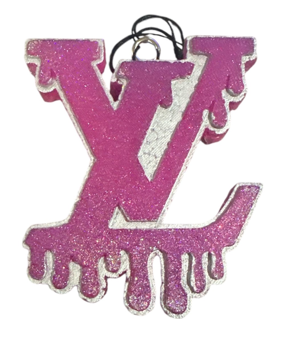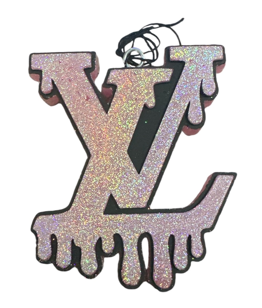This LV Drip car freshie is shaped like the letters “LV,” which resemble the iconic logo of the luxury brand Louis Vuitton. The design has a dripping effect at the bottom, giving it a stylish and trendy look. The freshie is coated in a sparkly, glittery finish. Car freshies are often used to add a pleasant scent to a vehicle while also serving as a decorative item. Would you like one to be customized to feature a color or scent? Contact us at 210-878-6178 or drop in to see us to order yours today.