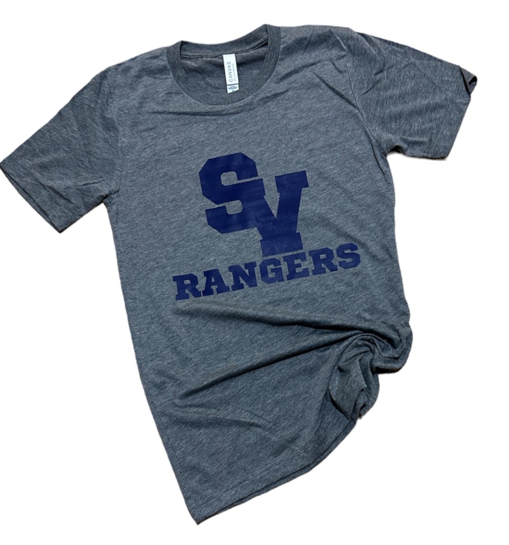 This simple Tee is sure to show your pride at any event, school or out and about. This is on a grey heathered soft Bella Canvas tee.
