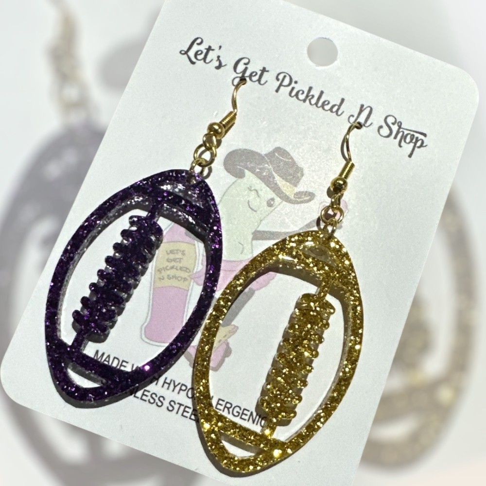 Score major style points with our Glitter Football Cut-Out Earrings! Perfect for tailgates, touchdowns, and team spirit, these fun earrings are crafted from high-quality glitter acrylic that adds just the right amount of sparkle to your game day look.