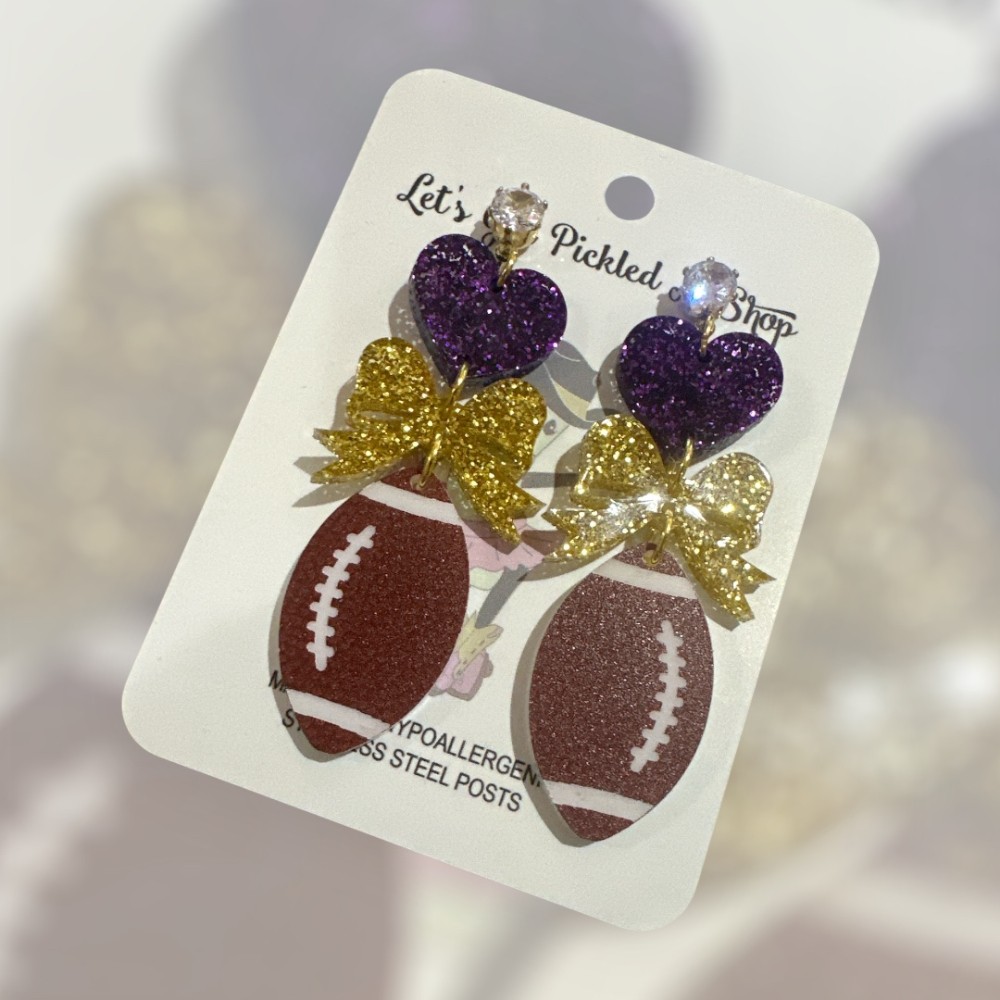 Oh yes we did! We combined hearts, bows, and footballs into the ultimate pair of game day earrings that bring all the sparkle and spirit. Made with high-quality glitter acrylic and finished with dazzling cubic zirconia studs, these earrings don’t just cheer — they shine.