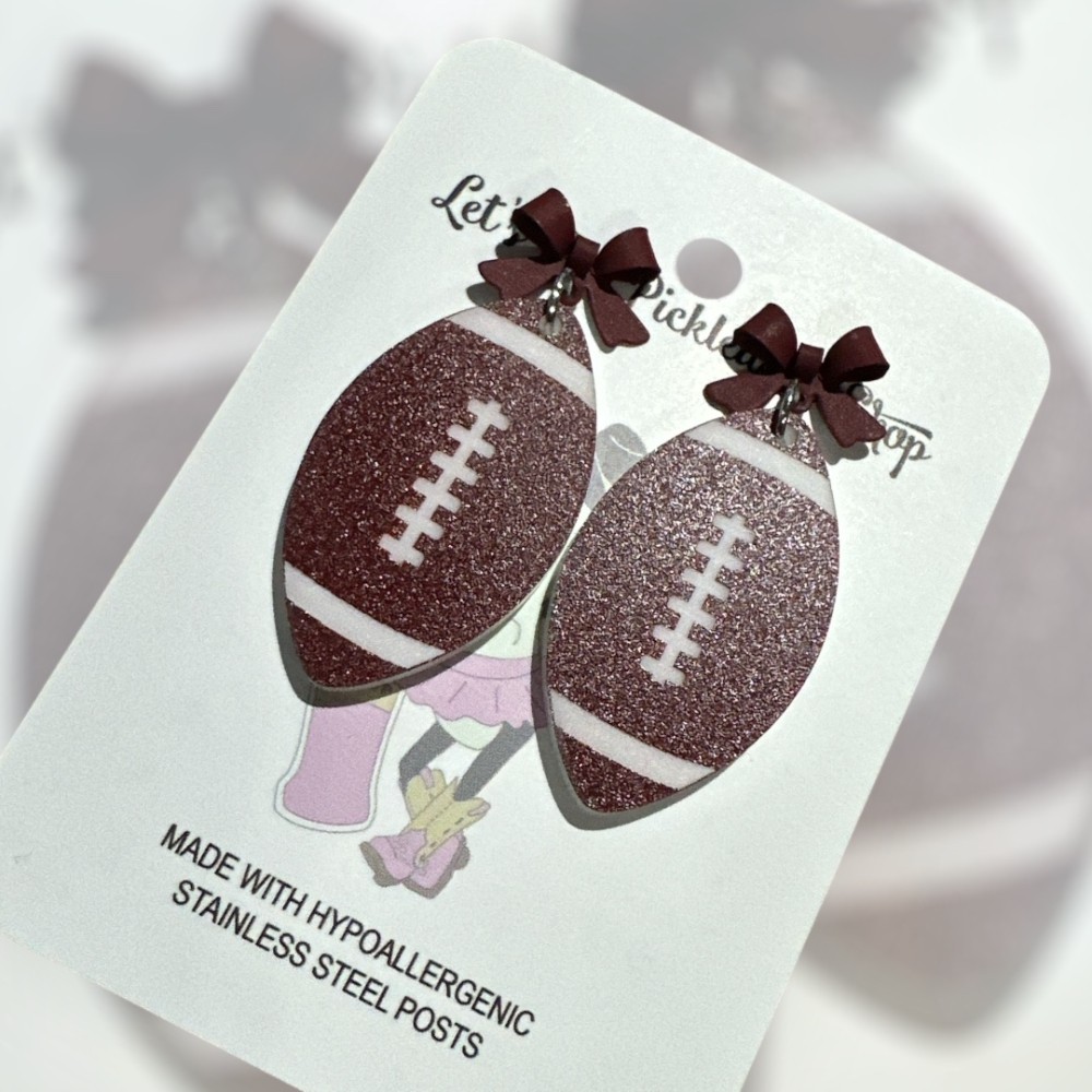 Take your football style to the next level with these adorable laser-cut football earrings, designed to bring major cuteness to game day! Each pair features a perfectly detailed football shape paired with stainless steel hypoallergenic bow studs that add just the right amount of playful flair.