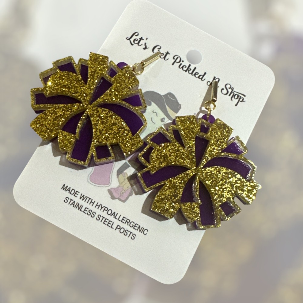 We’re excited to introduce our double-layered pom poms—a fun new way to show off your school spirit! Handmade with high-quality acrylic, these poms feature your main color on the bottom and a glitter accent color on top, creating a bold, eye-catching look that screams team pride. Whether you’re cheering loud in the stands or repping your spirit around town, these playful poms are the perfect mix of fun, flashy, and full of pride!