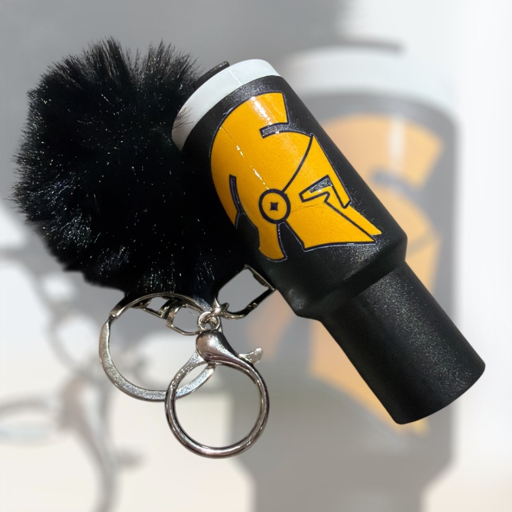 These Mini Plastic Keychain is a compact and clever accessory designed to resemble a Stanley. It features a hidden compartment under the top/straw providing a discreet and secure place to store small essentials like ChapStick, cash, or other small valuables. Perfect for everyday use, outdoor activities, or as a stylish way to keep your essentials safe on the go. Each comes with a matching Pom Pom