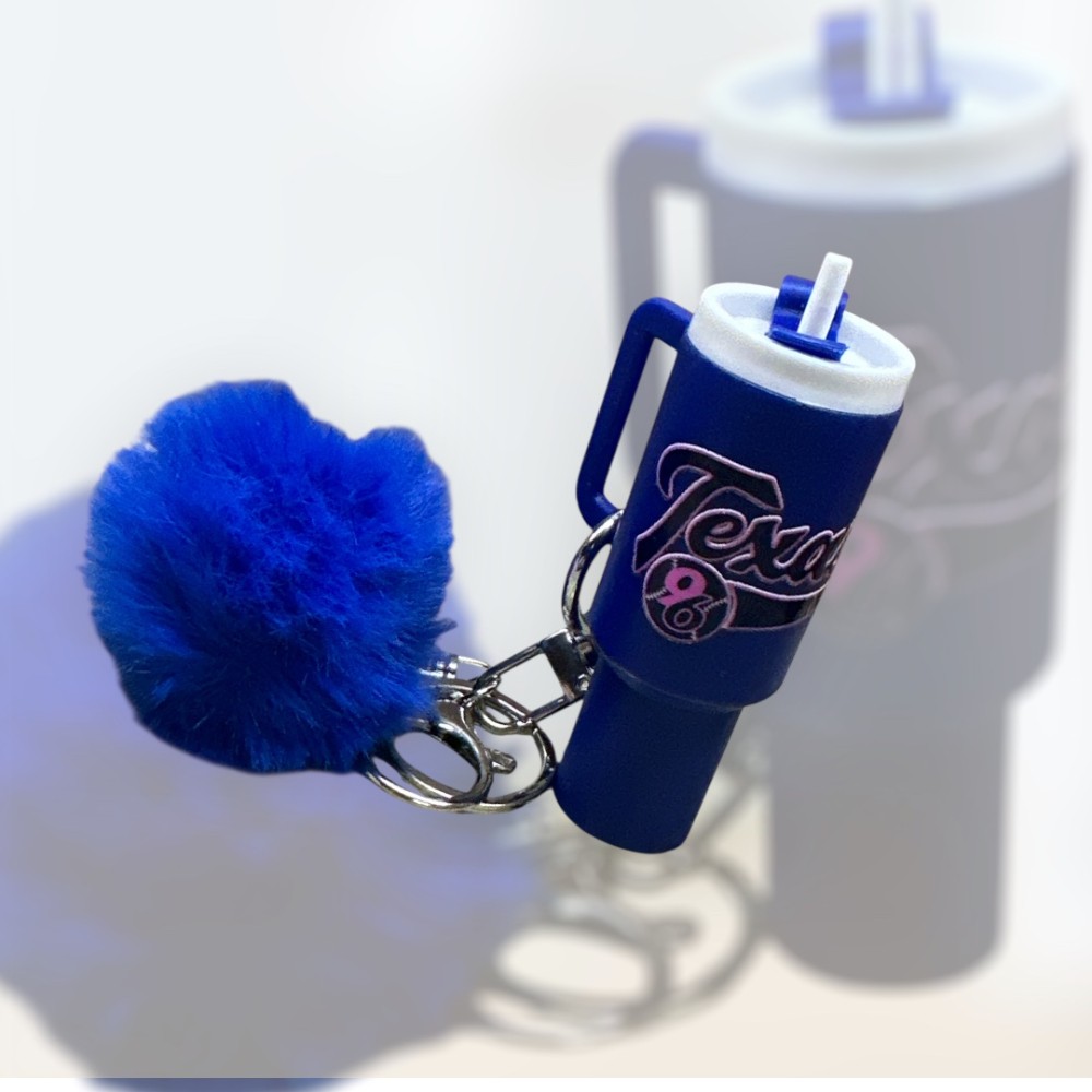 These Mini Plastic Keychain is a compact and clever accessory designed to resemble a Stanley. It features a hidden compartment under the top/straw providing a discreet and secure place to store small essentials like ChapStick, cash, or other small valuables. Perfect for everyday use, outdoor activities, or as a stylish way to keep your essentials safe on the go. Choose from the SV or the Guns Up with SV and comes with a matching Pom Pom