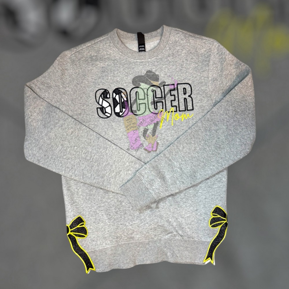 Show off your love for the game and favorite player with this cozy Soccer Mom sweatshirt! Perfect for chilly games, casual outings, or lounging at home, this sweatshirt combines comfort and style with a sporty touch. Whether you're at the stadium or running errands, this sweatshirt is a must-have for every Soccer-loving Mom!