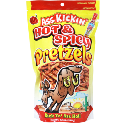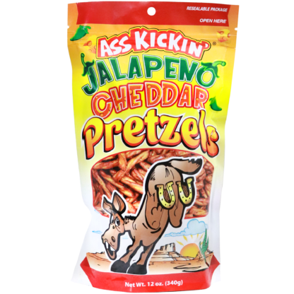 Ass Kickin’ Pretzels twists come in a 12oz bag are the ultimate snacking experience. These mouthwatering pretzels are crafted with the perfect blend of seasoning. Guaranteed to leave your taste buds tingling for more as each pretzel has an addictively crunchy texture that perfectly complements the spices generously infused into every bite.