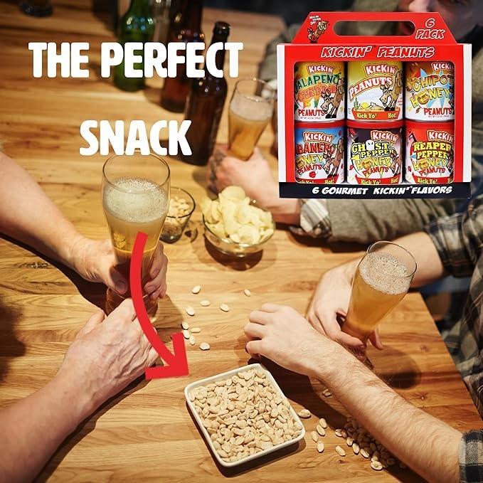 This KICKIN set offers a delicious selection of flavored peanuts, including savory and sweet to EXTREME Heat! This peanut gift set offers you to enjoy all the classic flavors of peanuts with a new twist, satisfying your cravings and indulging your taste buds in every bite. Great way to introduce someone to the joys of gourmet snacking, or to treat a seasoned snacker to a variety of new and exciting flavors. Packaging of the gift set makes it the perfect present for any occasion, from birthdays to holidays and beyond. Each peanut is made with high quality ingredients and is cooked to crispy perfection, ensuring maximum flavor and crunch in every bite.