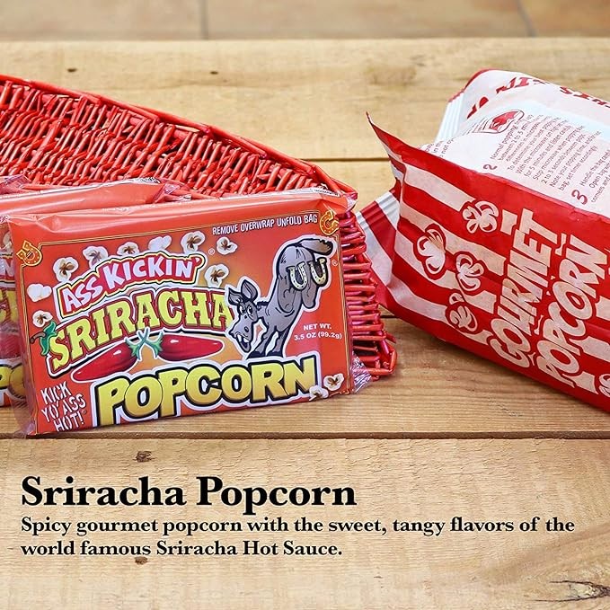 SRIRACHA - Made with just the right amount of Sriracha's this popcorn has just the right amount of kick without burning out your taste buds.