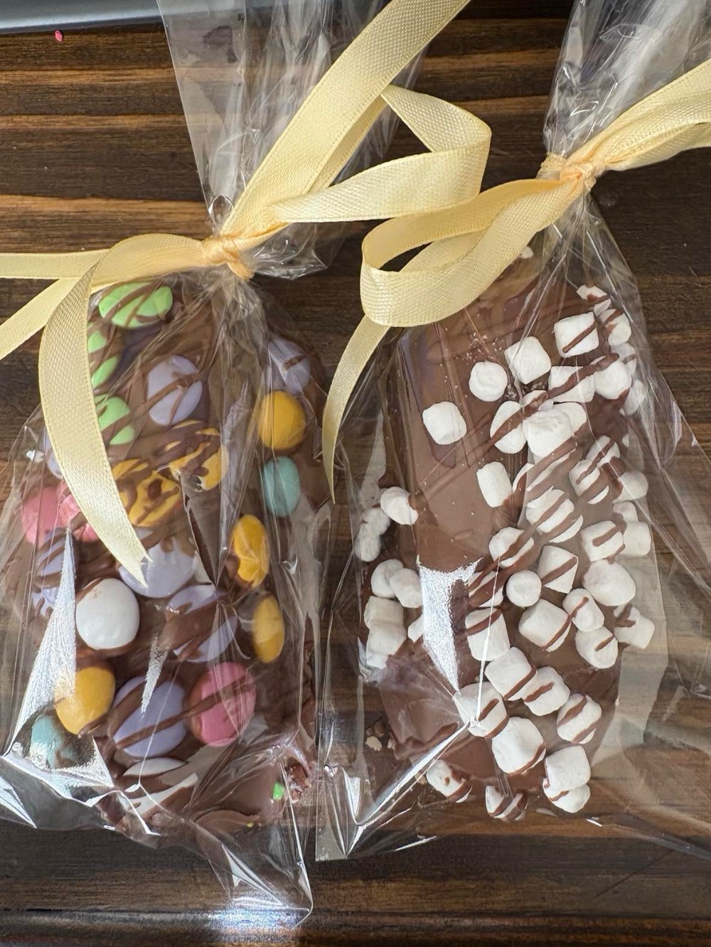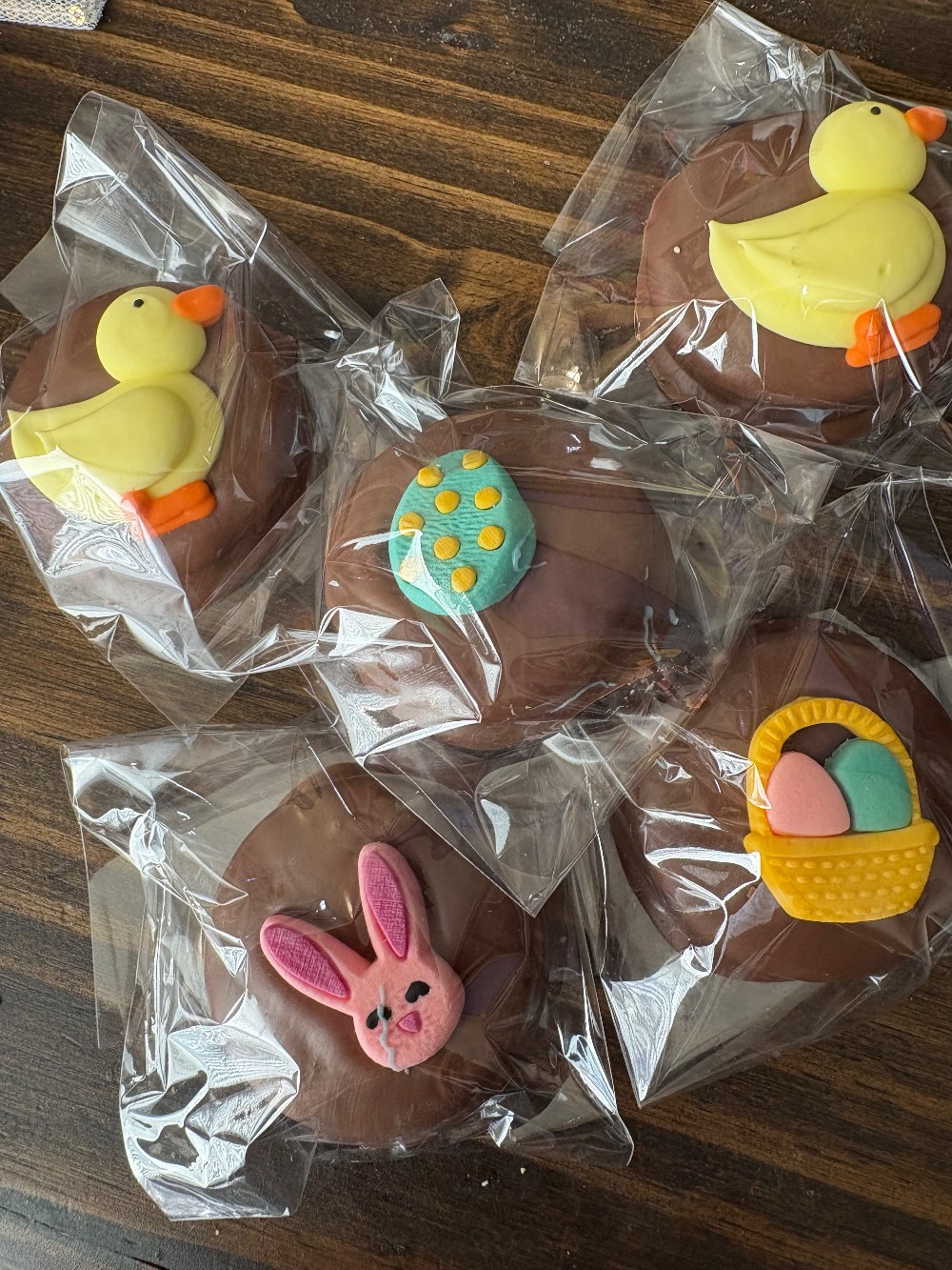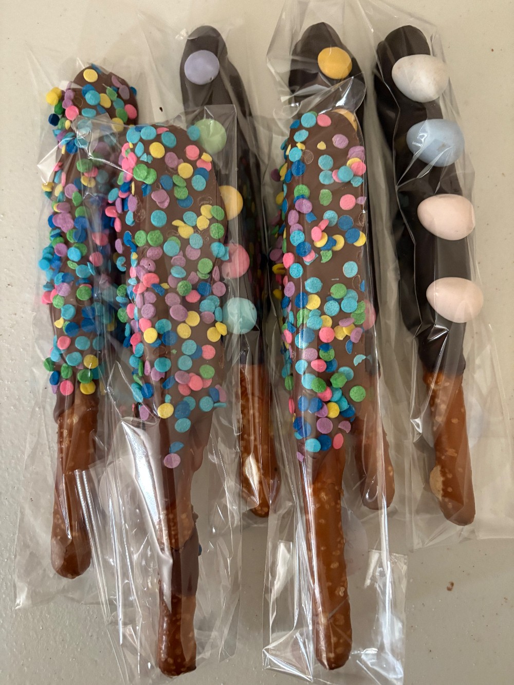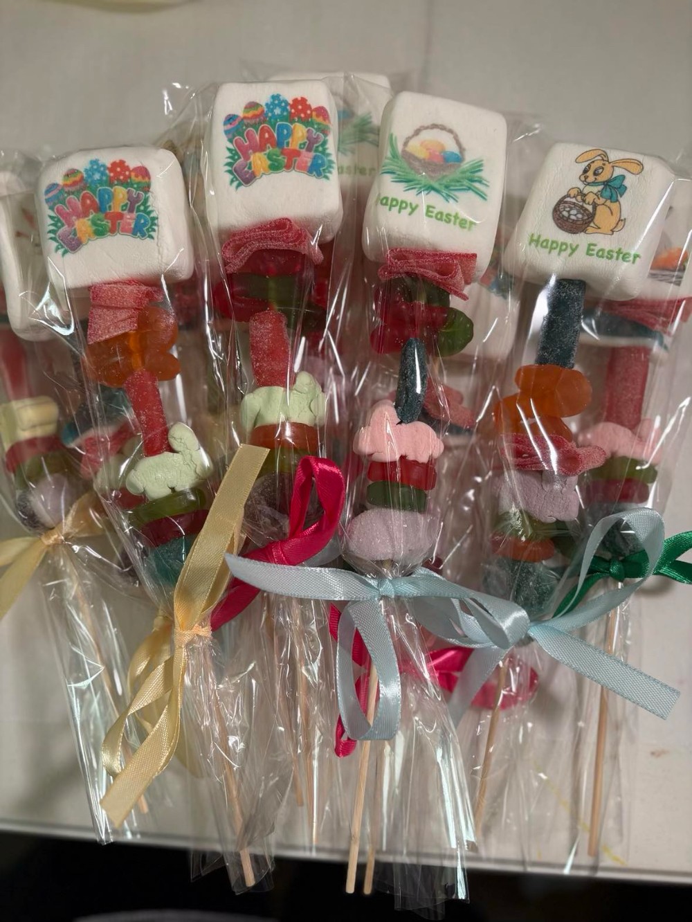 These handmade sweet treats are the perfect way to add a touch of fun and flavor to any celebration! Crafted with care and decorated to perfection, each treat is designed to bring joy to all ages. Enjoy a delicious mix of chocolate-covered pretzels filled with caramel, adorable chocolate bunny suckers, and colorful candy kabobs featuring candy and marshmallows on a skewer. You’ll also find chocolate-covered Oreos and Rice Krispie treats decorated for the season, offering a delightful variety of flavors and textures. Whether for a holiday, party, or just because, these treats are sure to satisfy your sweet tooth and make any occasion extra special!