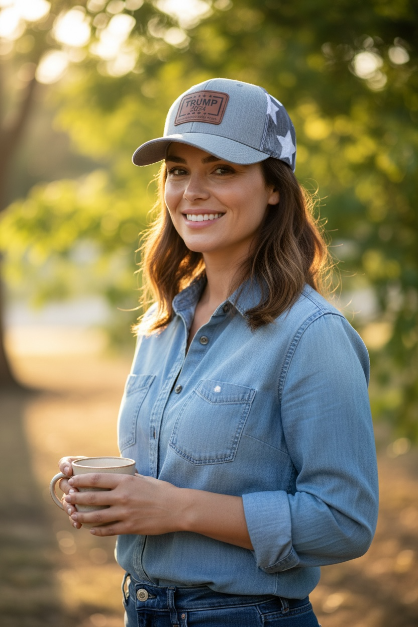 Show your support in style with the Trump 2024 Make America Great Again Richardson 112 Unisex Leather Patch Trucker Cap. This modern take on the iconic Richardson 112 combines classic trucker style with stars and stripes mesh design, making it a standout addition to any casual outfit. Featuring a durable leather patch with the Trump 2024 “Make America Great Again” design, this cap offers a comfortable mid-pro structured fit that keeps its shape while delivering a timeless look. The pre-curved bill provides ready-to-wear style, while the breathable mesh back keeps you cool whether you're at an event, outdoors, or on the go.
