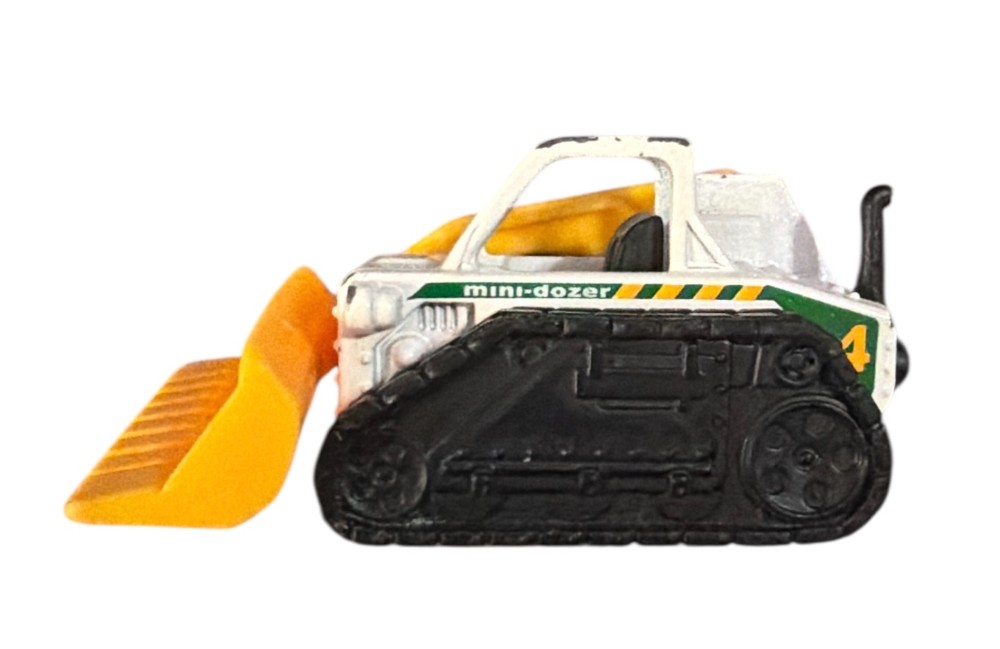 This Matchbox MBX Construction Mini Dozer (BDV71) features a white body with a yellow blade and green/black accents for a realistic construction look. Made from durable die-cast metal, this mini dozer is perfect for imaginative play or adding to a Matchbox collection. A great choice for construction vehicle fans, collectors, and kids who love heavy-duty machines.